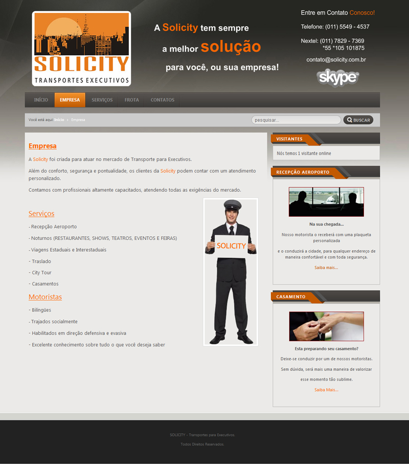 O site da Solicity precisava passar uma imagem mais moderna para seus clientes, por isso, optou por uma mudança visual completa em seu site. O principal objetivo era transmitir aos seus clientes a segurança, o conforto e a economia dos veículos além do profissionalismo de seus colaboradores.
