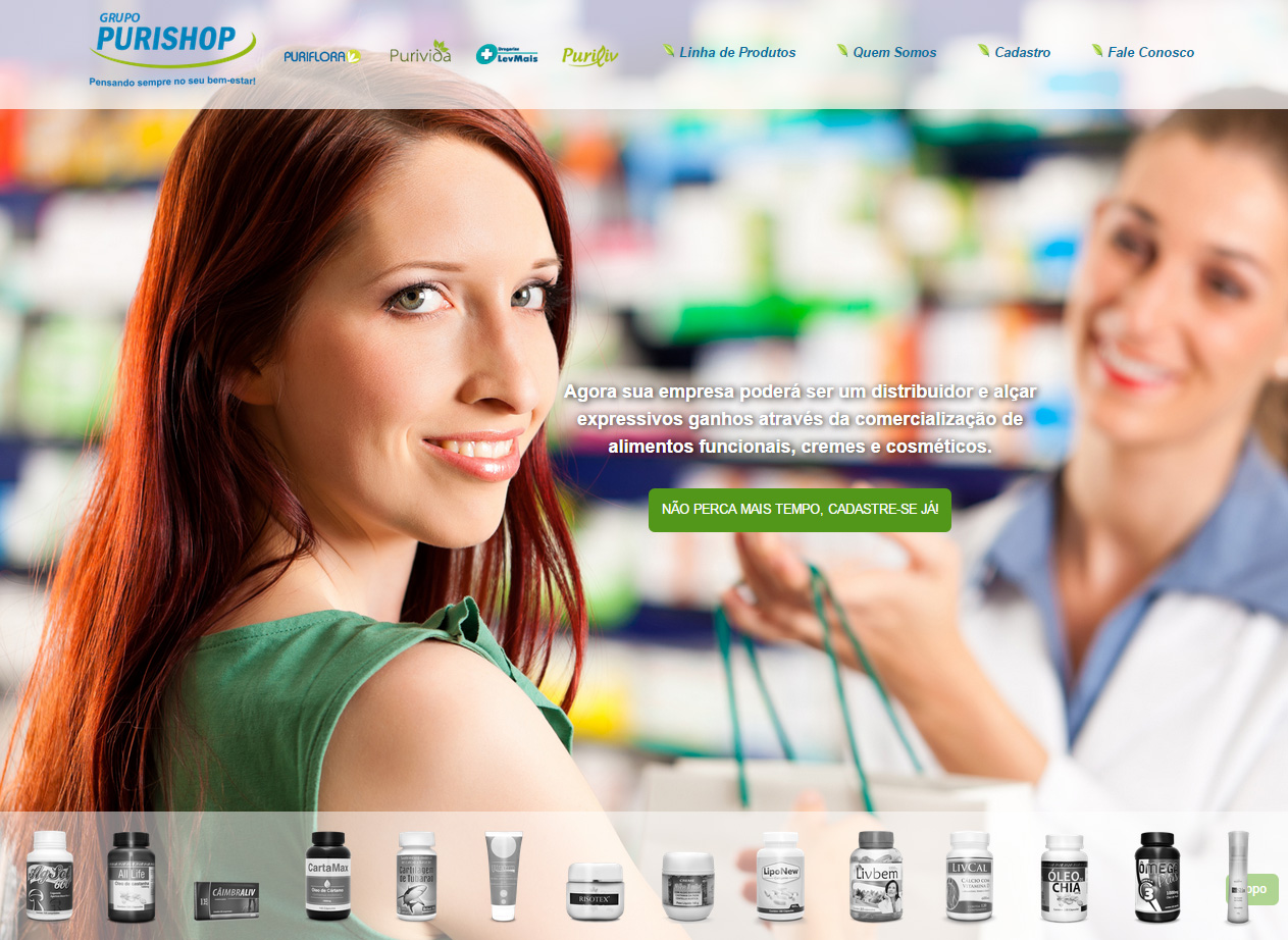 Houve a necessidade de criação de um website para revenda dos produtos do grupo Purishop, no qual, os representantes pudessem conhecer a empresa, os produtos e as vantagens de se tornar um revendedor.